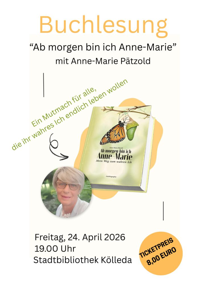 Die Stadtbibliothek Kölleda und Anne‑Marie Pätzold freuen sich auf inspirierende Begegnungen und einen Abend, der nachklingt.